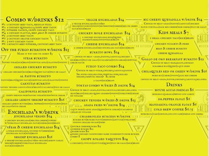 Welcome to El Gallo De Oro, a culinary gem nestled in the Buena Park Mall at 8308 La Palma Ave, CA. This vibrant Mexican restaurant offers an enticing menu that captures the spirit of authentic Mexican cuisine. Patrons rave about the mouthwatering tacos de pescado and carnitas burritos, known for their generous portions and impeccable flavor. The chilaquiles, served Puebla-style, are a standout, providing a delicious twist on a beloved classic.